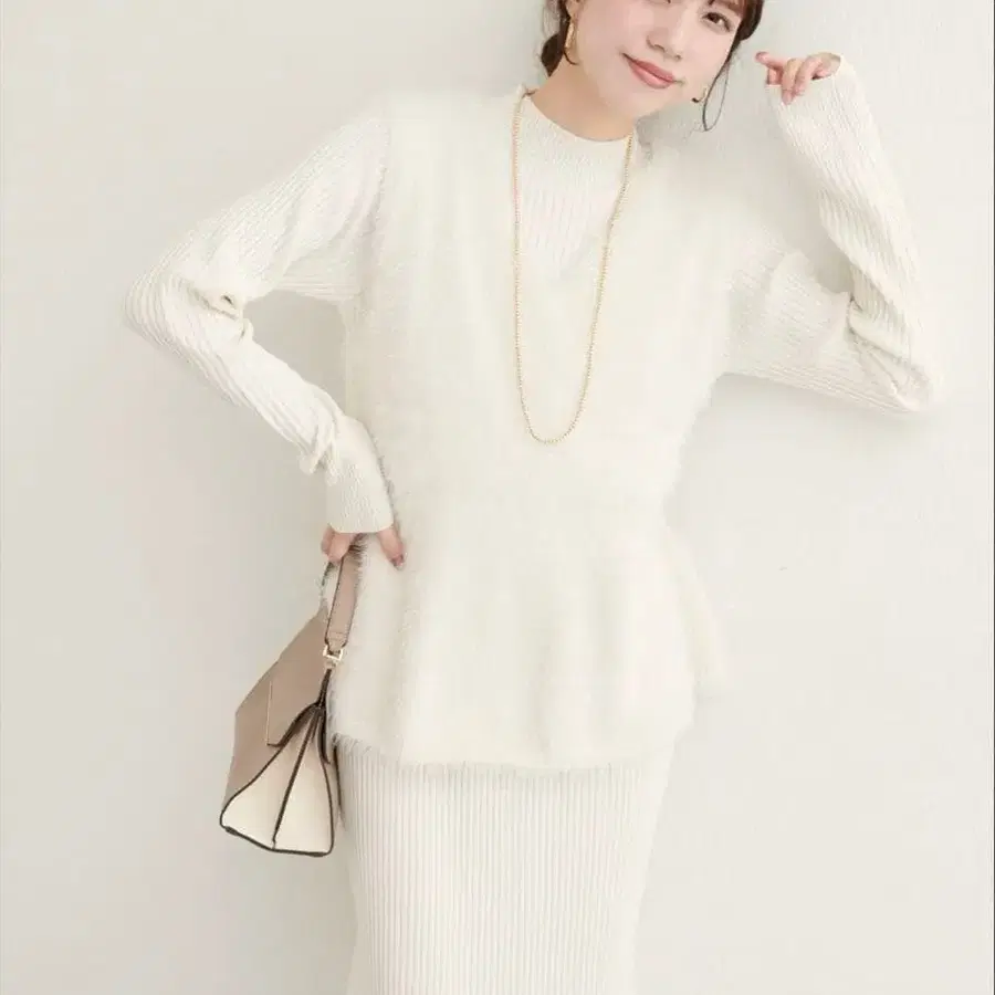 페더 페플럼 베스트 + 리브 타이트 원피스 SET