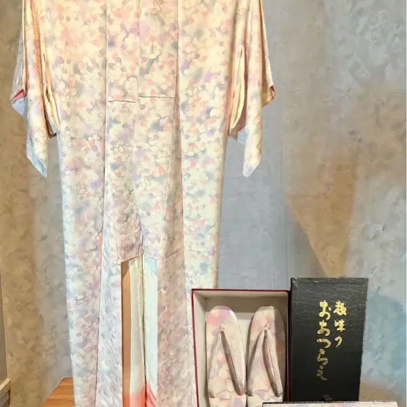 꽃무늬 코몬 기모노 조리 클러치백 세트