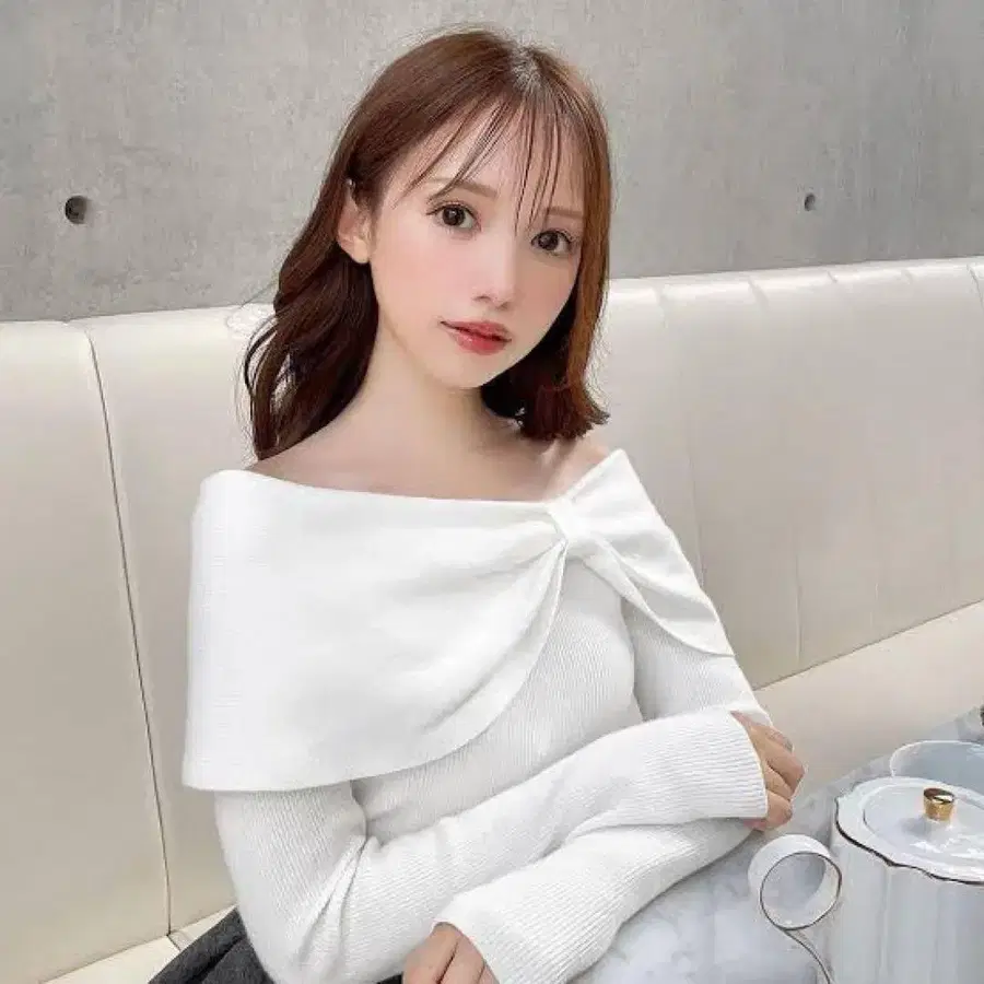 미셸 마카롱 리본 오프숄더 니트탑 [단종]