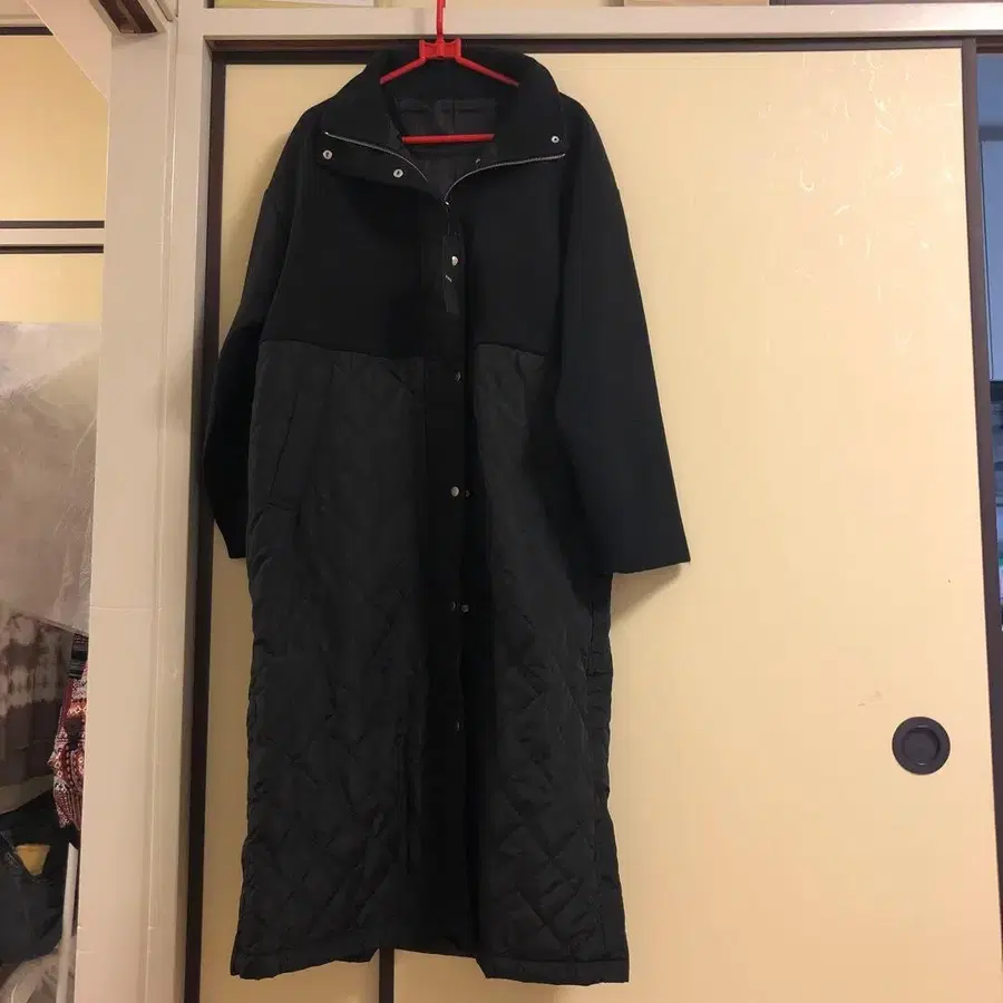 블랙 퀼팅 자켓 롱 기장