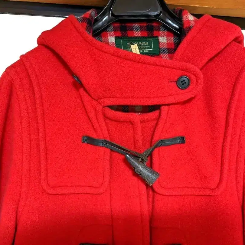 빨간색 후드 부착 더플 코트