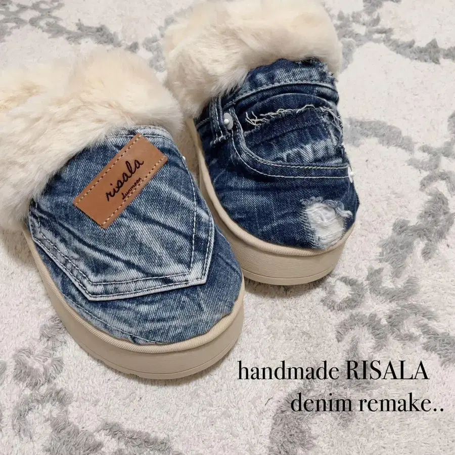 데님 퍼 샌들입니다! 겨울 한정판입니다!! 야외 사용 가능합니다 ✩ .*˚ 뒷면에 사이즈가 기재되어 있지만 재팬 사이즈 24cm~24.5cm라고 기재된 것을 사용하고 있습니다!! 따라서 사이즈는 24cm~24.5cm입니다ꕤ ︎ ·͜· 밑창 대략 발가락 쪽 2.5cm, 발꿈치 쪽 4cm 미사용 새상품이지만 미세한 얼룩이나 퍼 빠짐이 있을 수 있습니다. 최대한 제거 후 발송되지만 신경 쓰이지 않는 분의 구매 부탁드립니다m(_ _)m 좋은 인연이 있다면 잘 부탁드립니다(*^^*) USED 데님 사용 ⁡ ---------------- ⁡ 〈세탁 방법〉 신발용 브러쉬로는 세탁할 수 없습니다. 칫솔 정도의 브러쉬로 표면을 문지르듯이 세탁하는 것은 가능합니다!! 잘 말려주세요ꕤ ︎ ·͜· 참고 예로, 실내화로 이용하시는 분 중에 망에 넣어 세탁기로 돌리고 있습니다! 라고 하시는 분도 있었습니다(*^^*) - — 〈비고〉 개인적인 감상이지만 23.5cm인 분도 신을 수 있을 것 같습니다ꕤ ︎ ·͜· 두꺼운 양말을 신으시는 분은 한 사이즈 크게 해도 좋을 것 같습니다(*^^*) 평소 22.5cm~23cm인 저도 조금 큰가? 정도이고 신지 못할 사이즈는 아니었습니다(ᐡᵕ̤ ·̫ ᵕ̤ᐡ) 참고로 부탁드립니다 ✩ .*˚ ⁡ ⁡ #데님리메이크 #데님 #denim #핸드메이드
