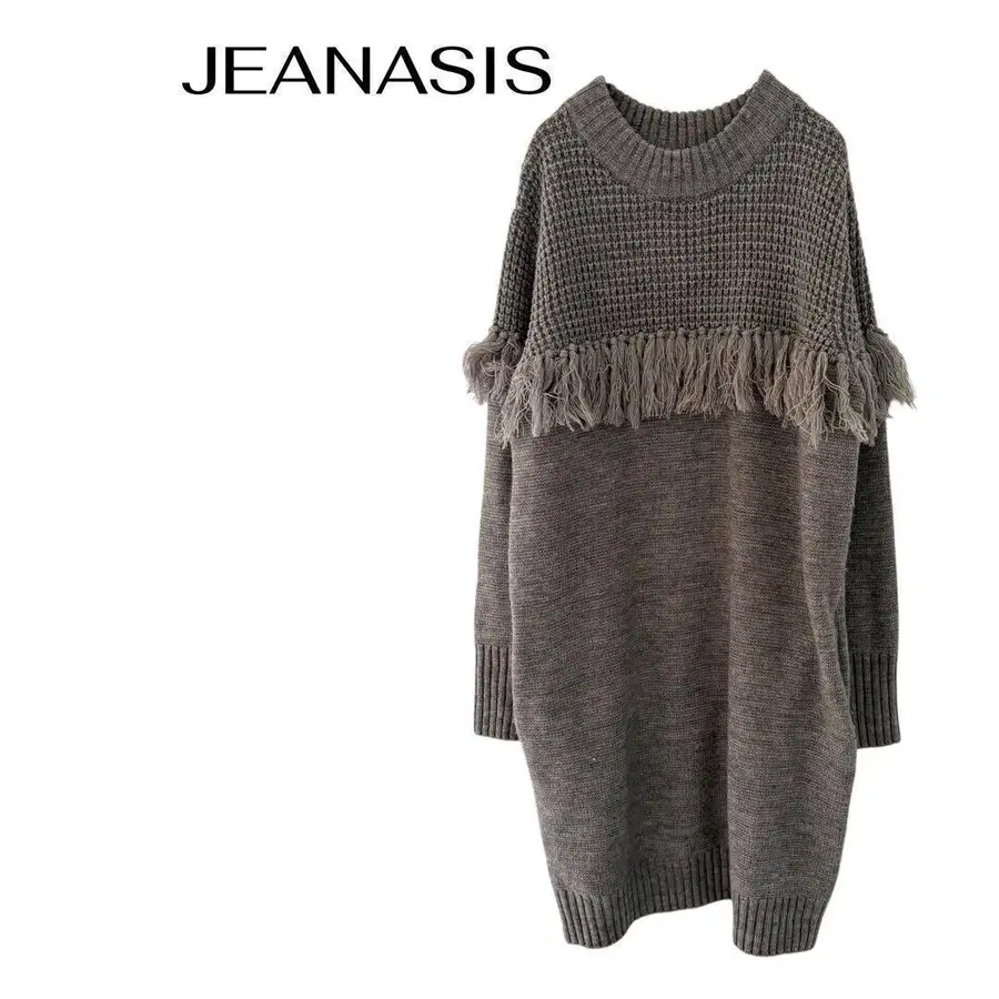 지나시스 긴팔 니트 스웨터 판초 원피스 갸루 울