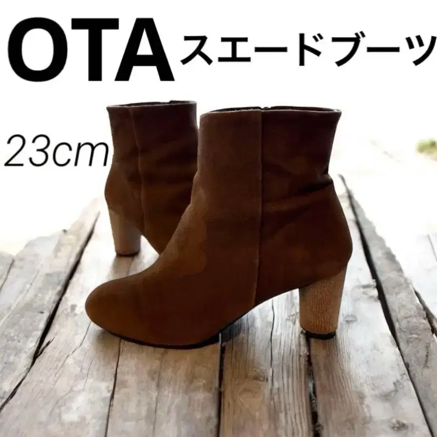 [새상품급] OTA 브라운 스웨이드 숏부츠 23cm 힐 반짝이