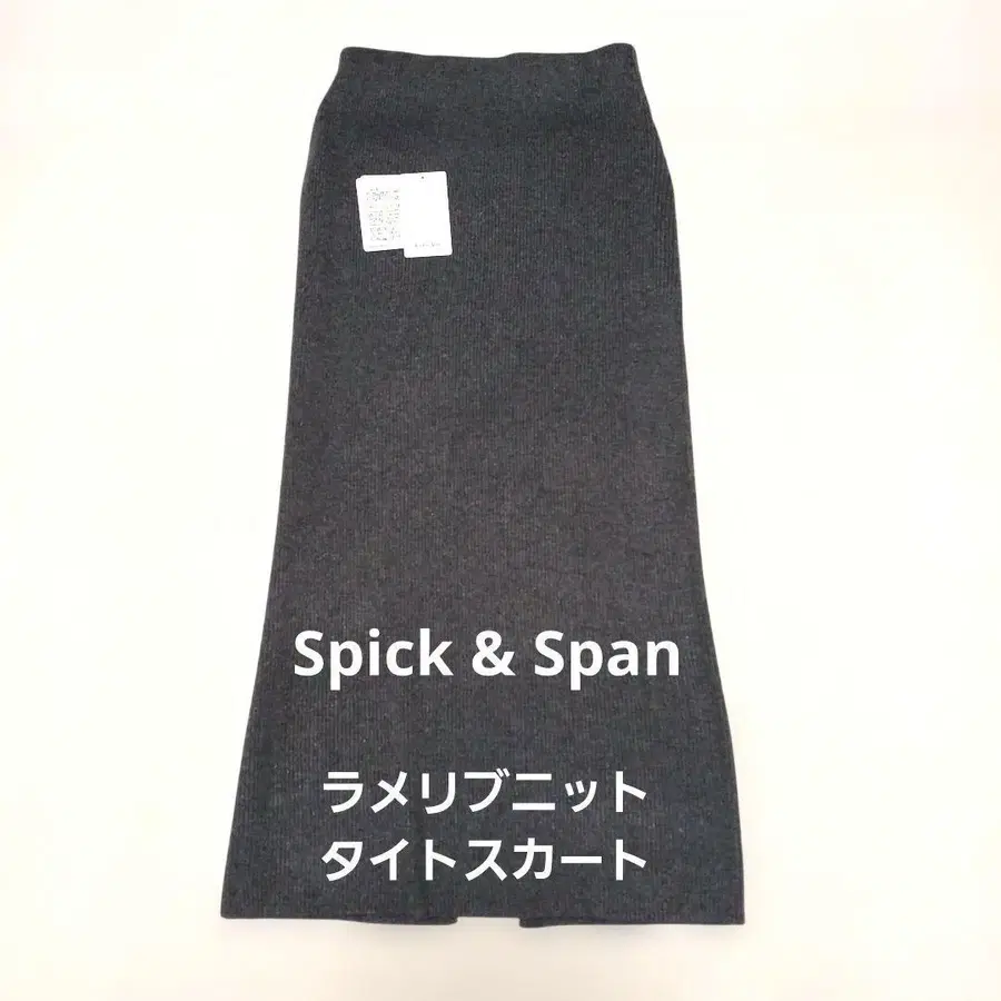 Spick & Span 라메 리브 니트 타이트 스커트 그레이