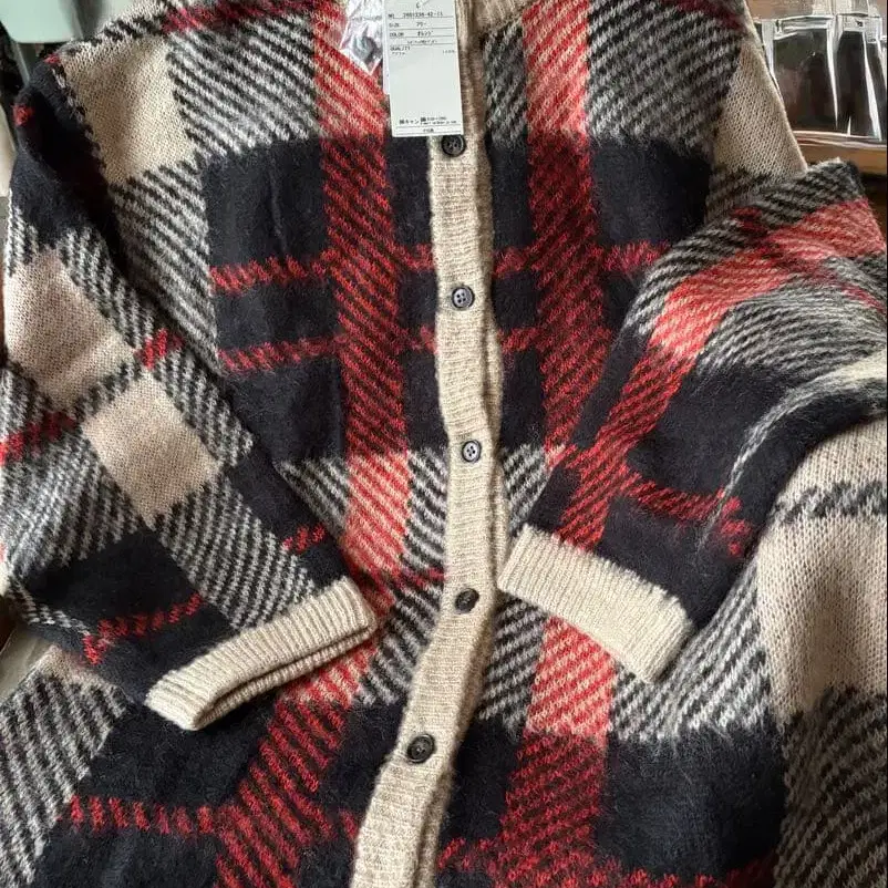 Samansa Mos2 체크 무늬 가디건 프리 사이즈
