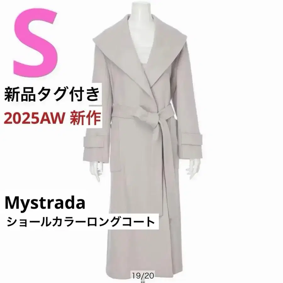 택 포함 새상품 Mystrada 숄카라 롱 코트 라이트 그레이 S