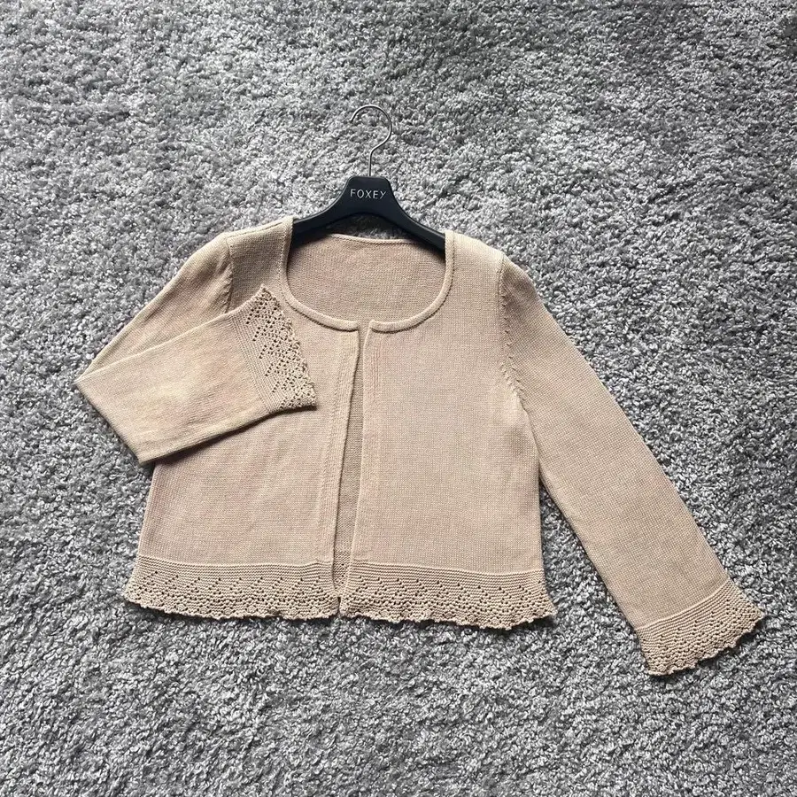 FOXEY NY 40 베이지 코튼 볼레로 가디건