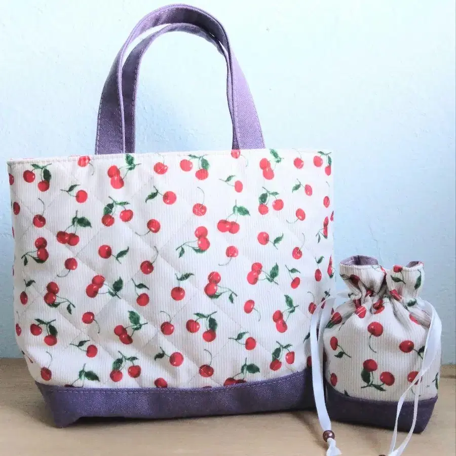 토트백 미니 복조리 파우치 포함 코듀로이 퍼플 캔버스