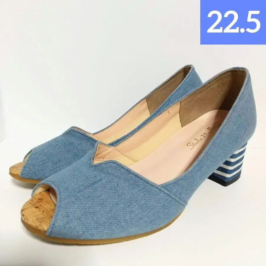 데님풍 캐주얼 펌프스 와이드 힐 보더 여성용