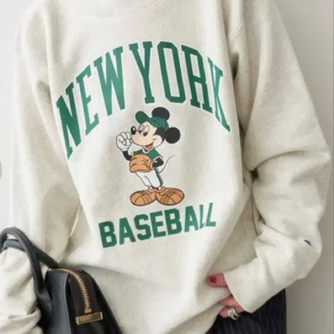 BASEBALL 유니폼을 입은 미키마우스에 아치 디자인의 NEW YORK을 조합한 캐치한 디자인. 오센틱한 적당한 오버 사이즈 실루엣에, 너무 두껍지 않은 적당한 두께감으로 데일리로 활용하기 좋습니다.