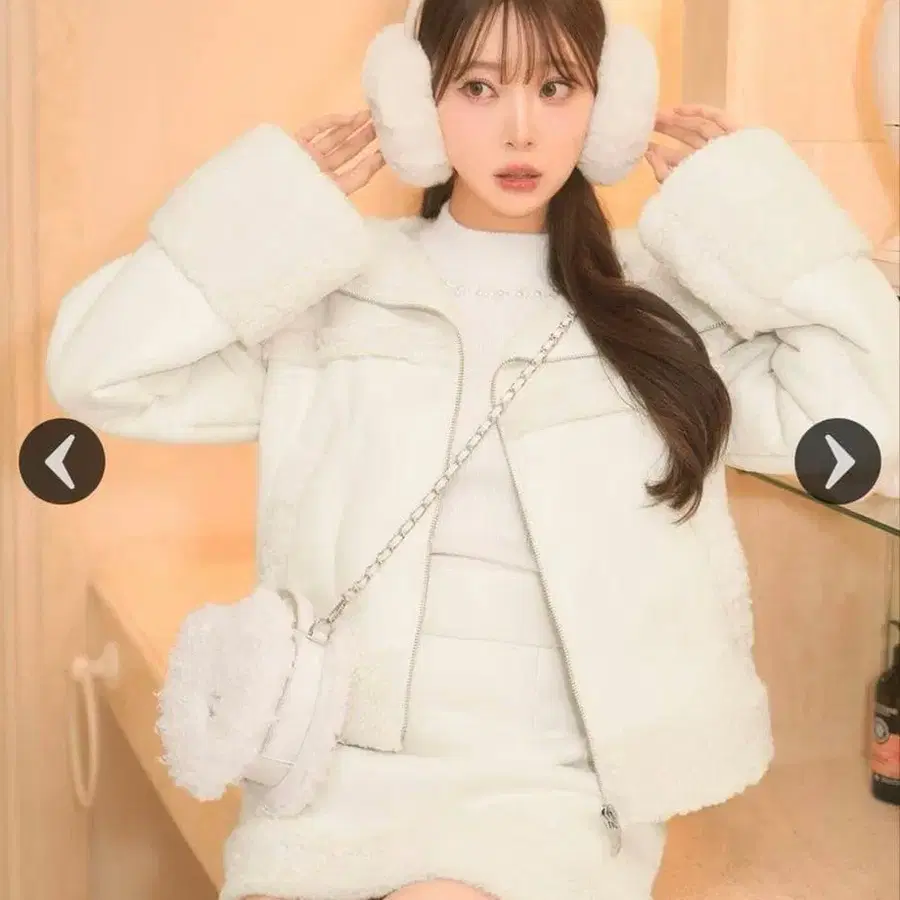 BIG 칼라 무스탕 셋업 화이트 프리 사이즈 미셸 마카롱