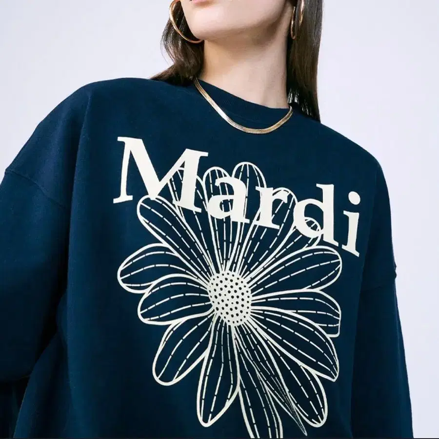 Mardi 플라워 프린트 맨투맨 네이비 원사이즈