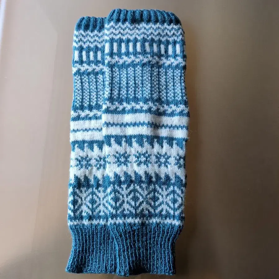 파랑과 화이트의 페어아일 무늬 레그 워머 핸드메이드