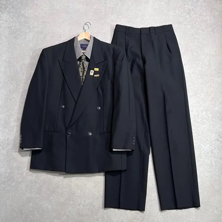 90s 빈티지 더블 수트 셋업 성인식 블랙 L