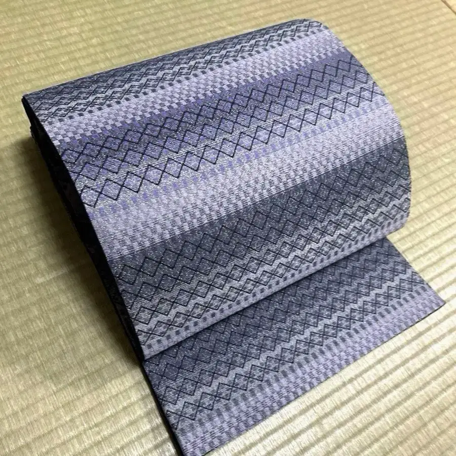 순수 실크 후쿠로 오비 [기하학 줄무늬]