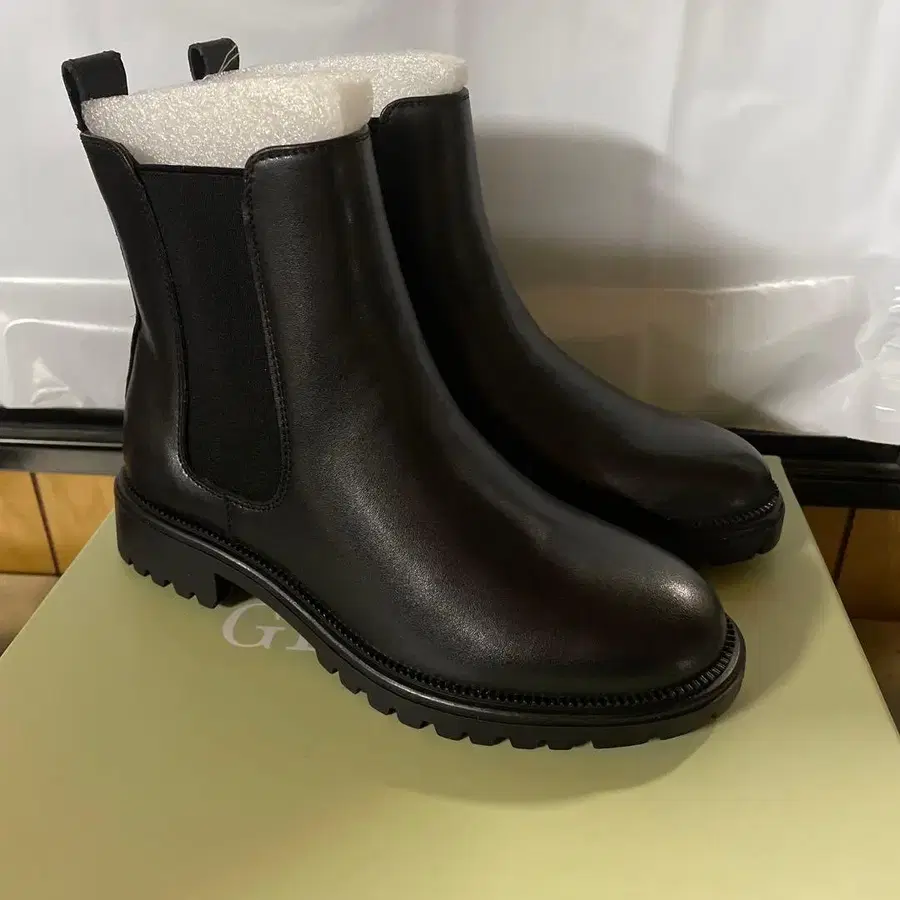 천연 가죽 블랙 사이드 고어 부츠 36