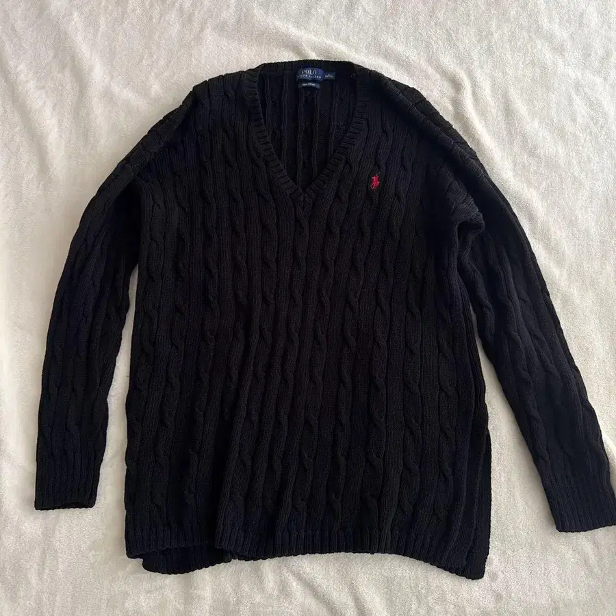 폴로 랄프로렌 블랙 V넥 케이블 니트 코튼