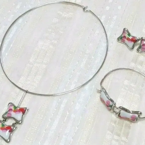 • 목걸이 귀걸이 팔찌 3세트 실버