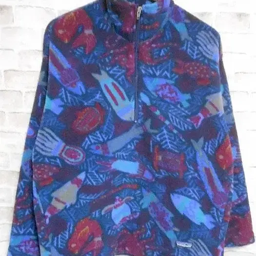 파타고니아 90s USA 해양 생물 패턴 하프 지퍼 플리스 자켓