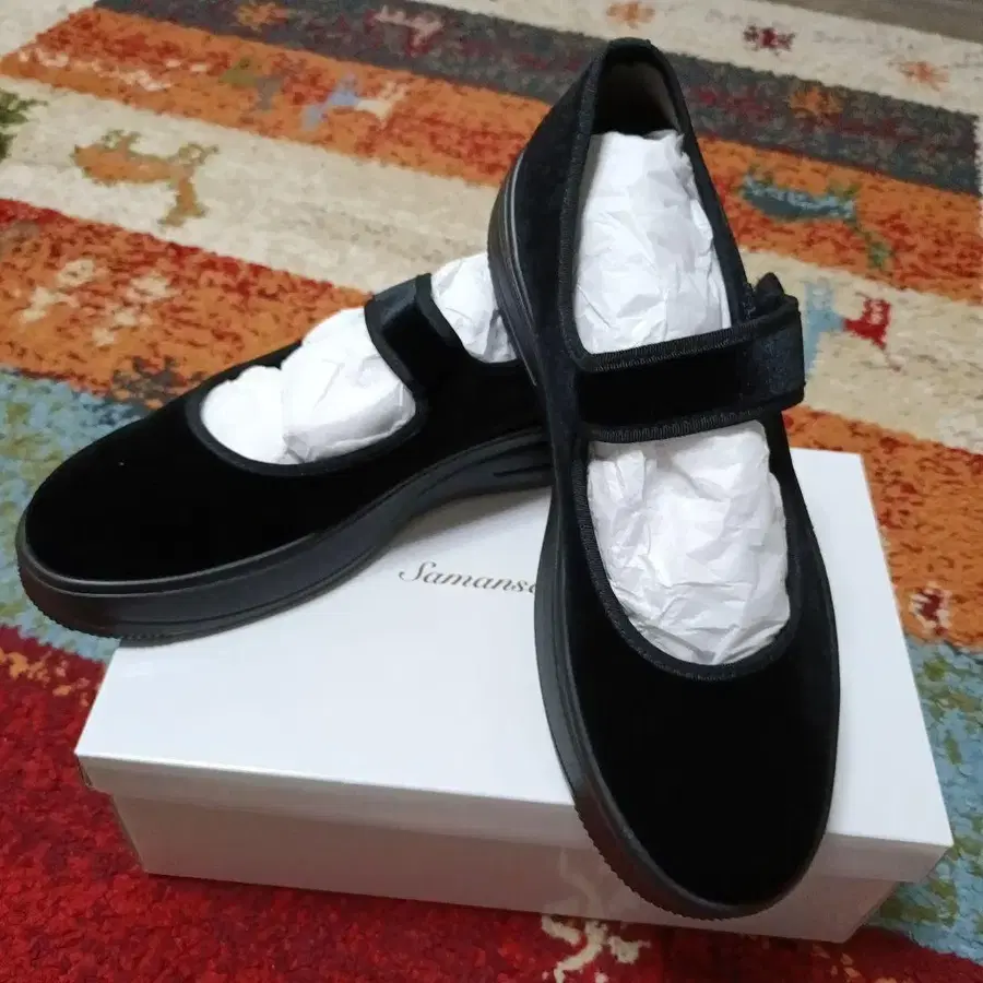 블랙 벨로아 플랫슈즈 벨크로 테이프