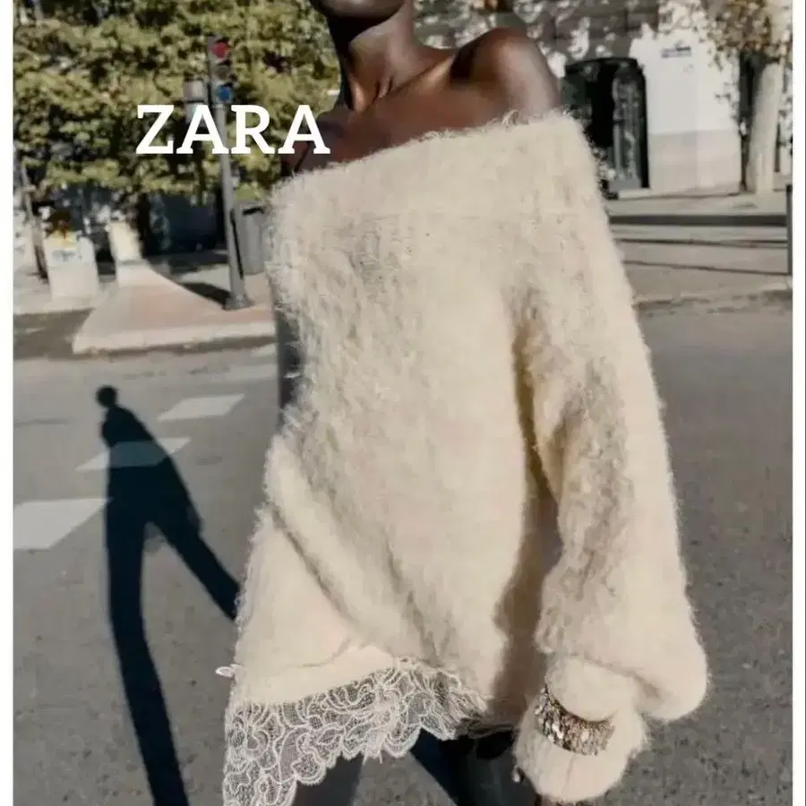[택 포함 새상품] ZARA*레이스 콤비 니트 스웨터*M