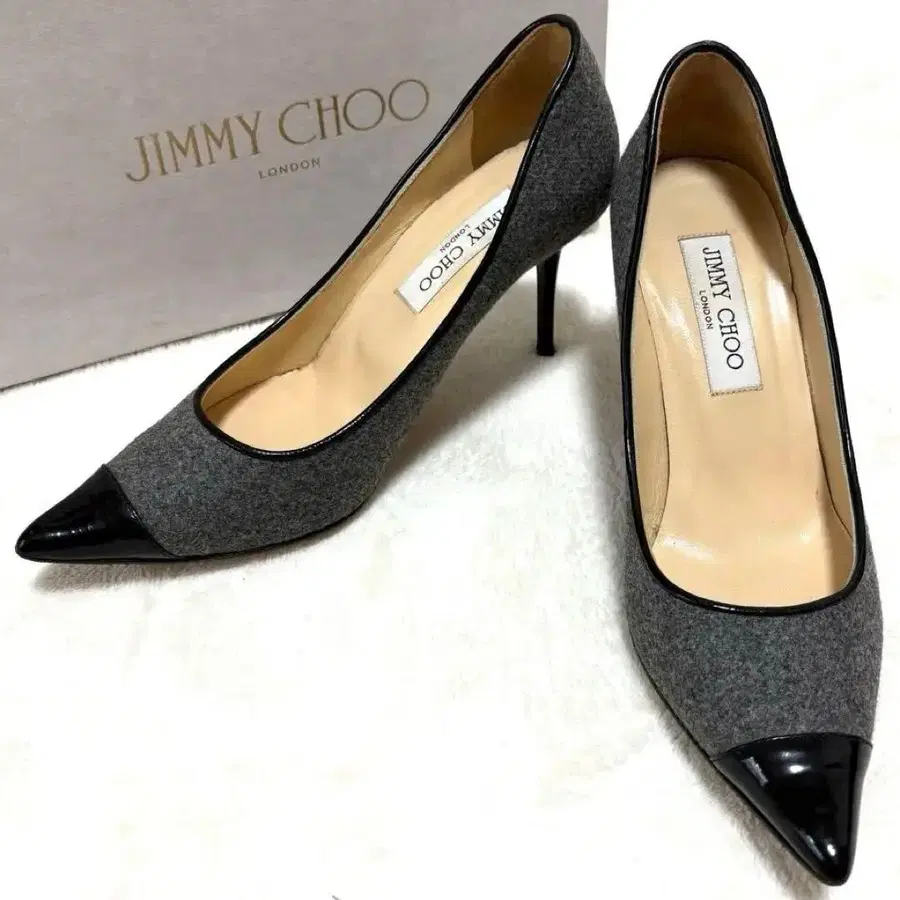 [ 새상품급 ] 지미추 펌프스 37 그레이 블랙 스틸레토 에나멜