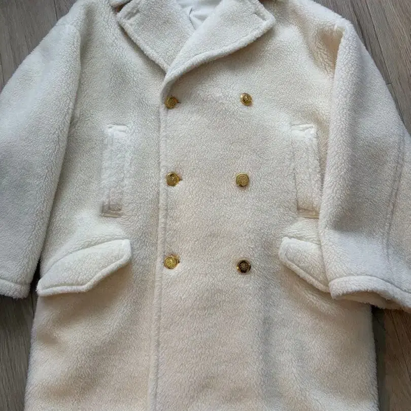 THIRD MAGAZINE 화이트 모 100 보아 코트 더블 브레스트