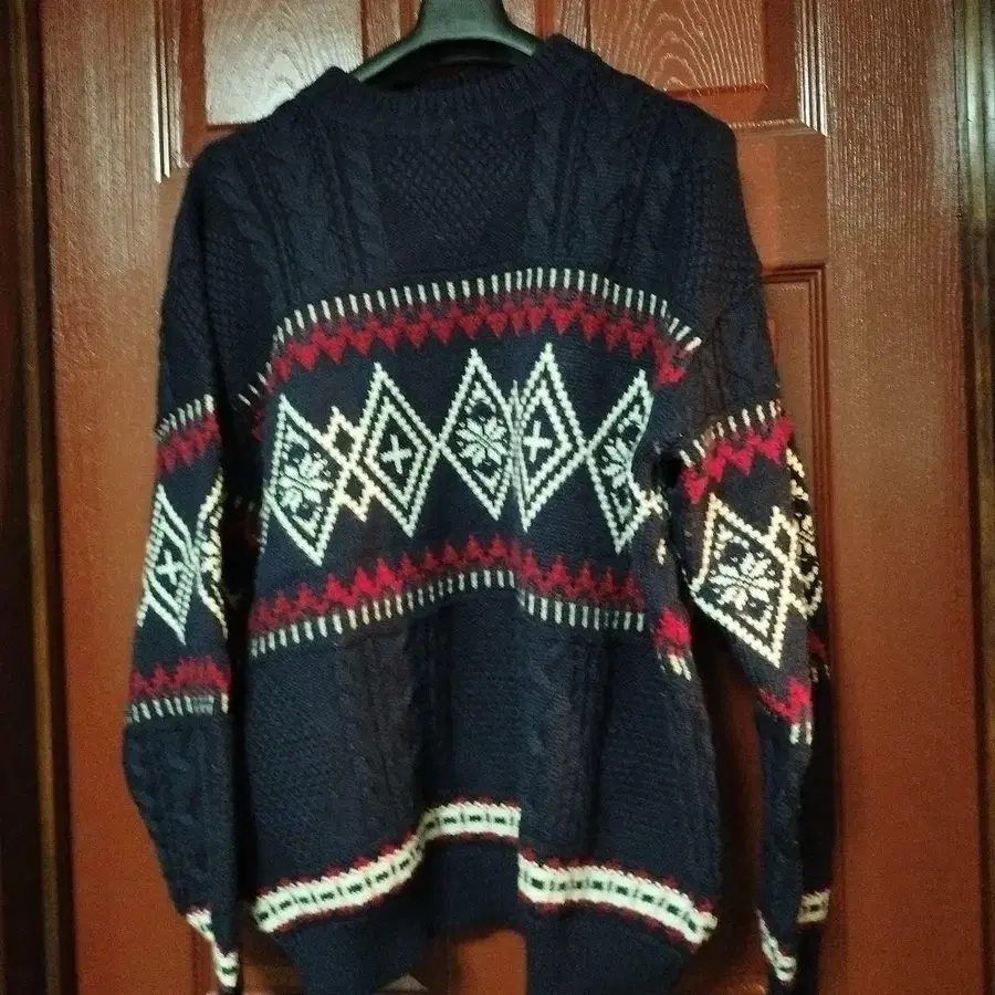 MITSUMINE 네이비 울 스웨터 기하학 패턴