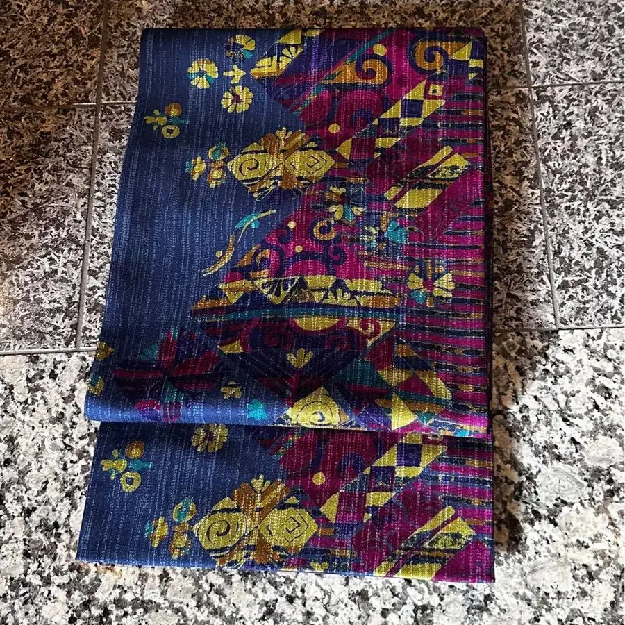 극일품 모던 피콕 마젠타색 아름다운 순수 실크 후쿠로 오비