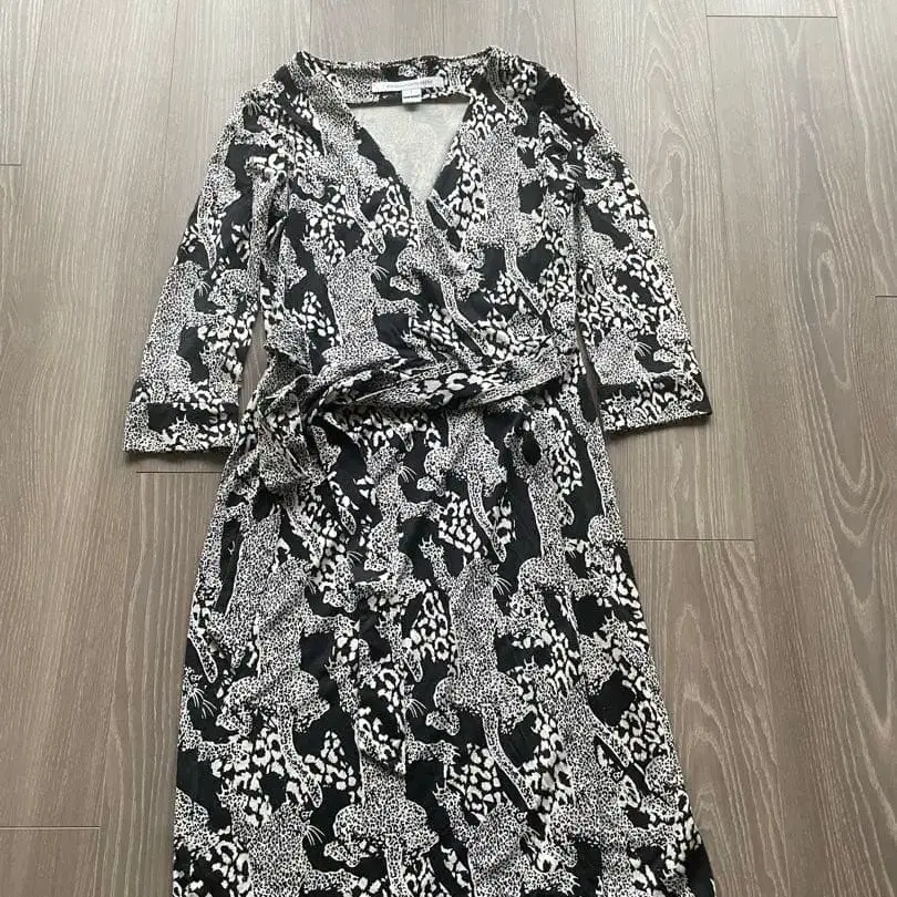 Diane von Furstenberg 랩 원피스 흑백 패턴 사이즈 0