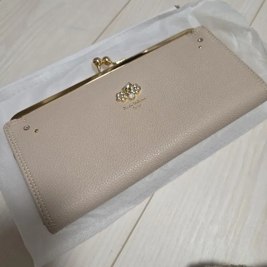 핑크 베이지 가죽 장지갑 골드 금장 장식 가마구치