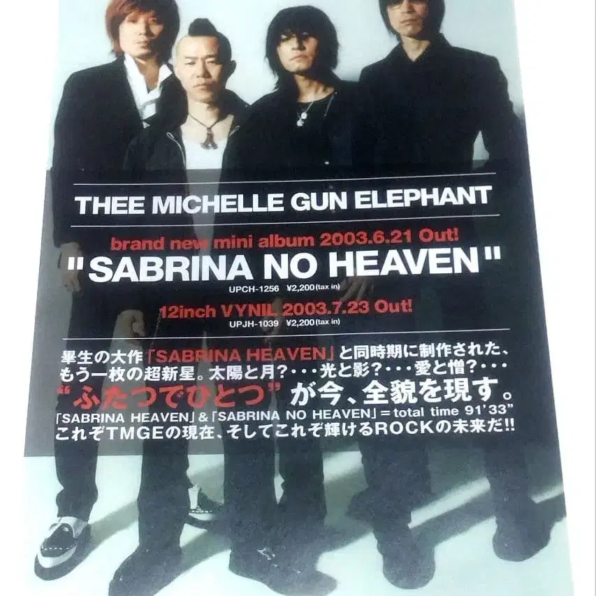 미셸 건 엘리펀트 SABRINA NO HEAVEN 타이틀 그대로의 상품입니다. 거의 B5판 사이즈. 뒷면 화이트. 소매점용 발매 고지용 플라이어는 실제 발매보다 상당히 이전에 제작되는 것으로, 실제 상품과는 다른 사진이 사용되는 경우가 많으며, 또한 드물게 실제 상품과 다른 내용이 기재되어 있는 경우도 있어 매우 귀중한 것입니다. 특히 오래된 것의 경우 제대로 깨끗하게 보관되어 있는 것은 드물며, 이처럼 새상품급으로 보관되어 있는 것은 극히 귀중합니다. 코어한 하이레벨 컬렉터분들을 위해 제공합니다. 두꺼운 원단으로 보호, 습기 보호를 하여 신속하게 발송해 드리겠습니다. 상품은 모두 개인의 장기 보관 중고품입니다. 노클레임으로 부탁드립니다. 이해하지 못하시는 분은 삼가해 주십시오. 반세기 이상 레코드, 도서 등을 취급해 왔습니다. 안심할 수 있는 메루카리 전용 상품입니다. 즉시 구매하셔도 괜찮습니다.