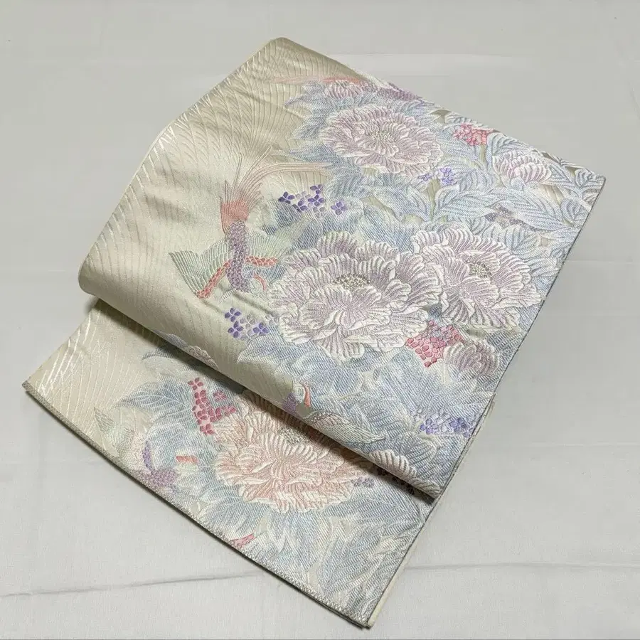 A 봉황과 모란 꽃 무늬 은사 순수 실크 후쿠로 오비 포멀 O15
