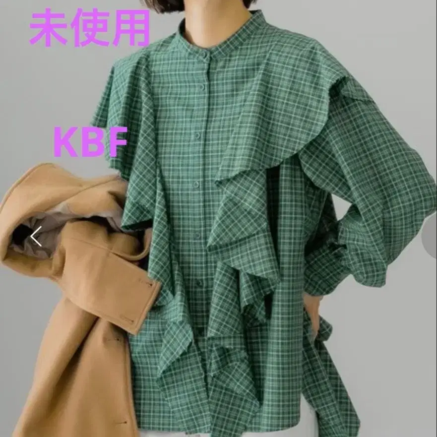 미사용 체크 무늬 프릴 블라우스 그린 계열 긴팔 KBF 어반 리서치