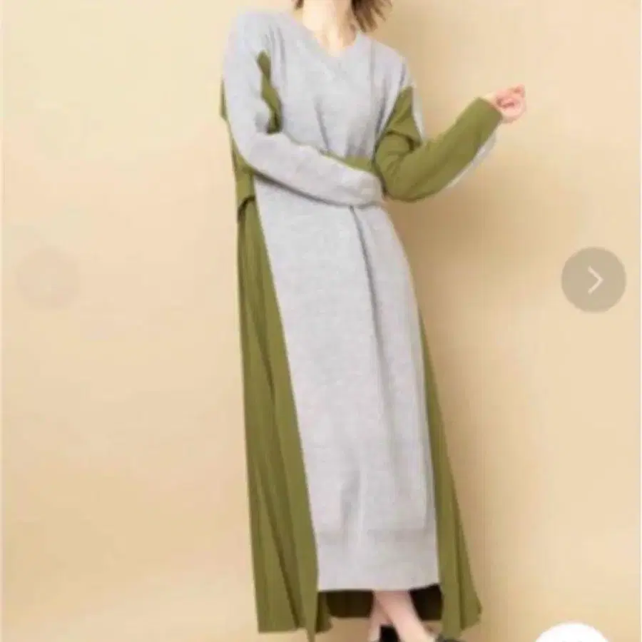오즈모시스 니트 이소재 도킹 플리츠 원피스