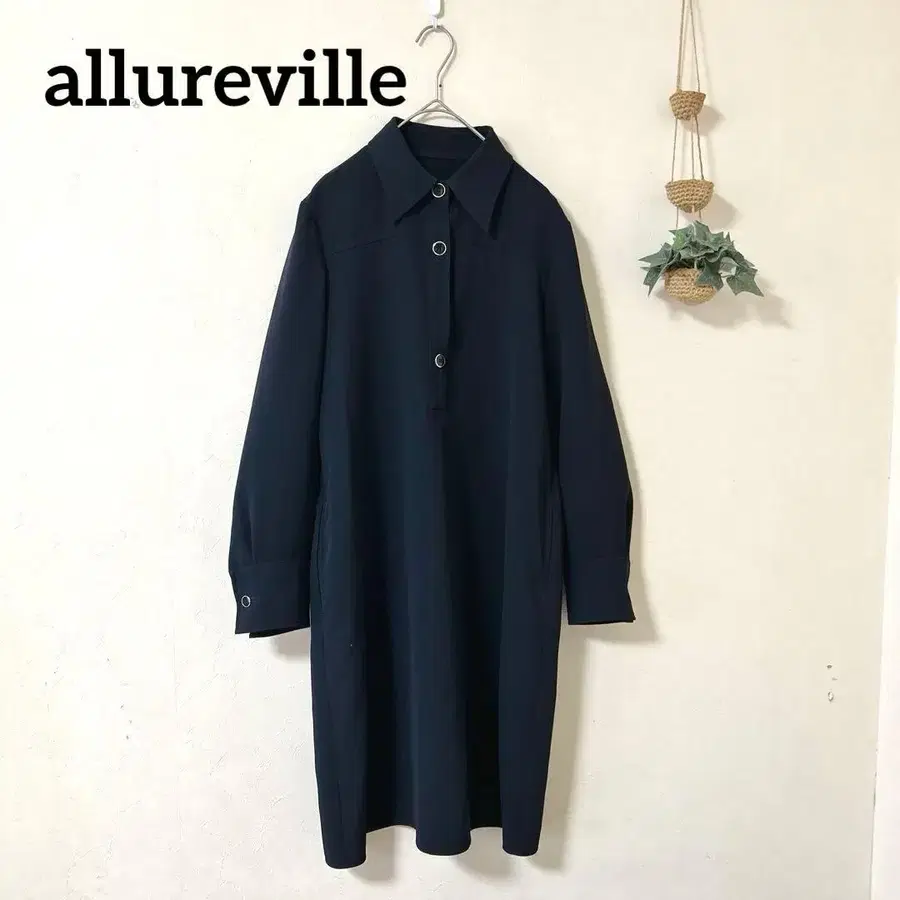 allureville 알아바일 트리아세테이트 셔츠 원피스 네이비