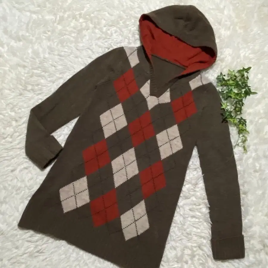 자동 번역되었어요. 원문보기아가일 무늬의 후드 니트 스웨터, 브라운 계열로 따뜻한 디자인.