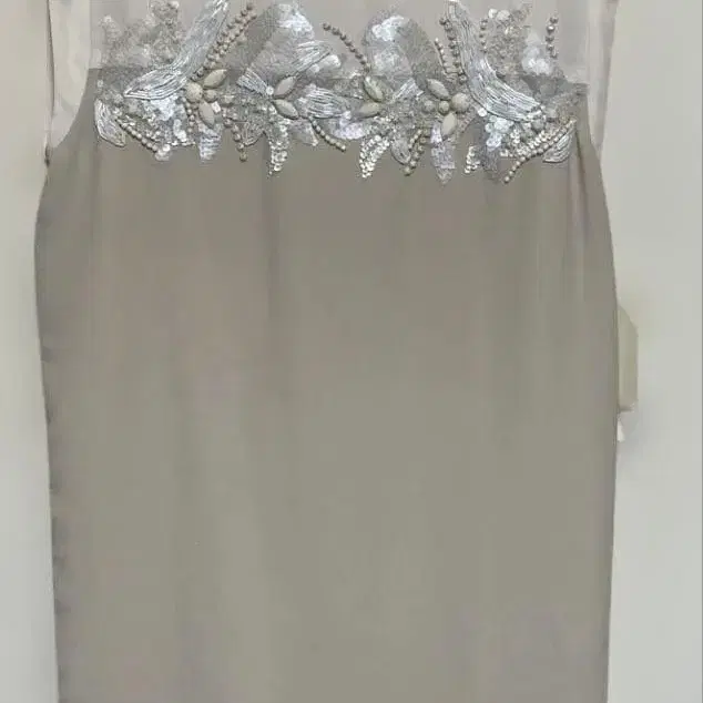 아름답고 섬세한 수작업! 이것이야말로 일본제인 황홀한 비즈와 스팽글 자수가 놓인 베이지색 원피스입니다.