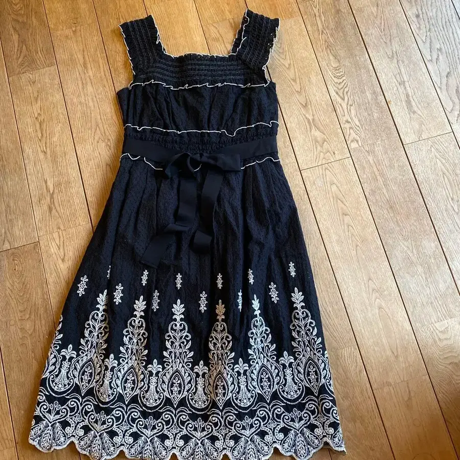 블랙 자수 장식 슬리브리스 원피스 fragile 플라지르