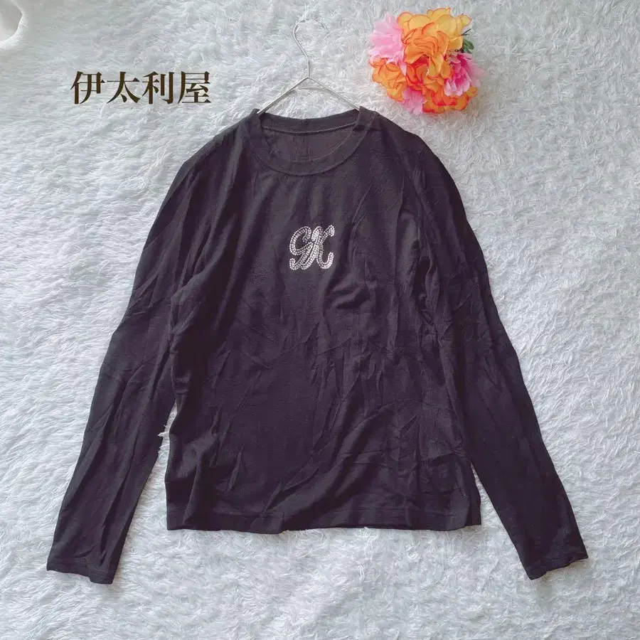 이타리야 [ S ] 블랙 긴팔 T셔츠 스톤 자수 캐주얼
