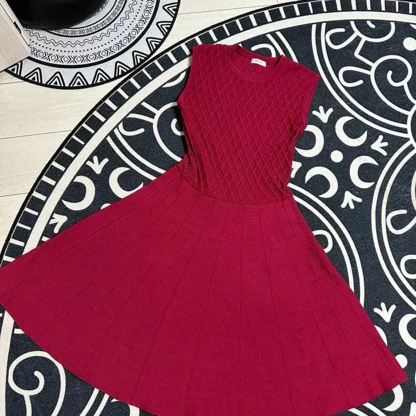 FRAY I.D 버건디 슬리브리스 니트 원피스