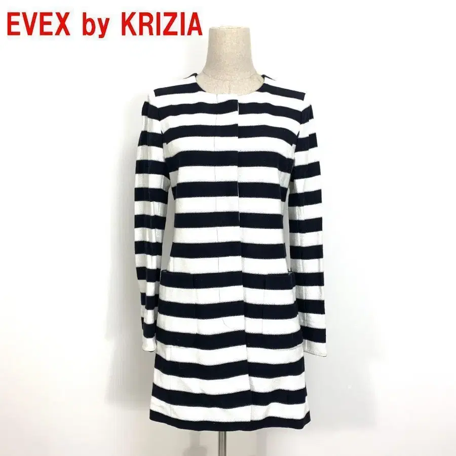 A4376 에벡스 바이 크리치아 롱 코트 면 보더 화이트 블랙 40