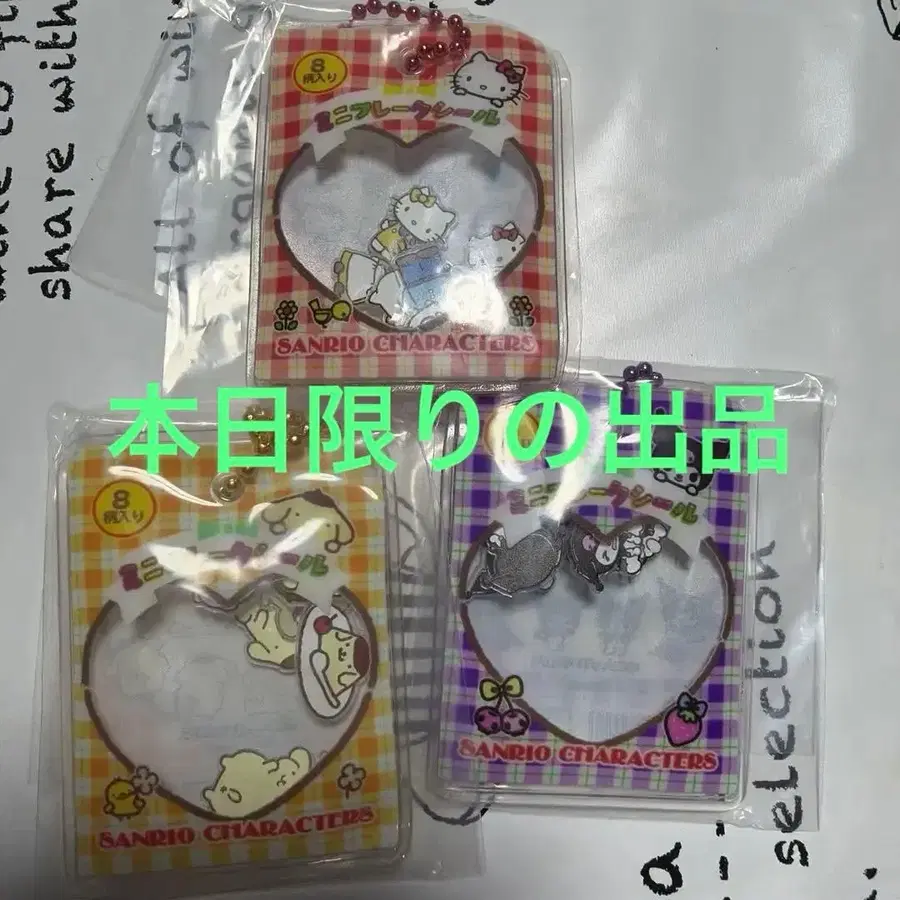 산리오 찰랑찰랑 플레이크씰풍 참 키티 쿠로미 폼폼푸딩