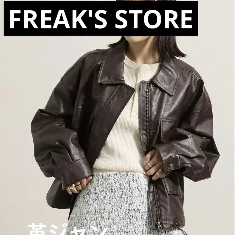 블루종 인조 가죽 블루종 가죽 재킷 브라운 FREAK'S STORE