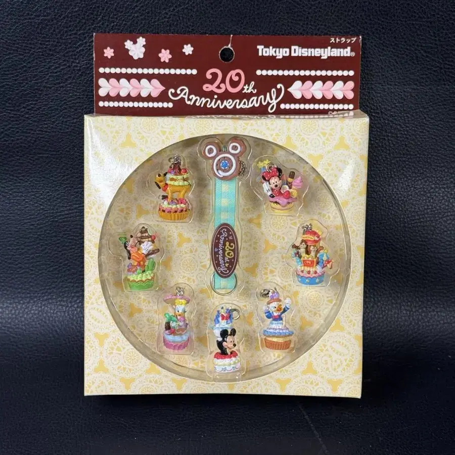 도쿄 디즈니랜드 20주년 기념의 컬러풀한 캐릭터 피규어 7개와 스트랩 세트