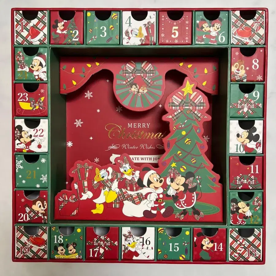 미키와 미니의 크리스마스 어드벤트 캘린더, 24개의 서랍이 있어 즐거운 디자인.
