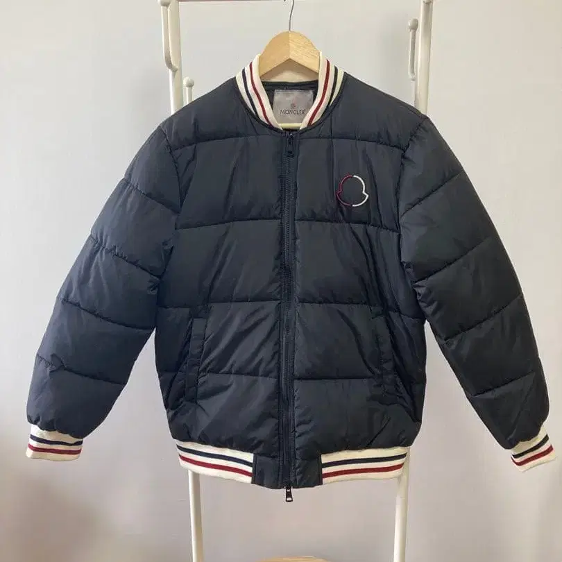 해당 상품은 블랙 색상의 다운 자켓으로, 베이스볼 스타일의 디자인이 특징입니다.