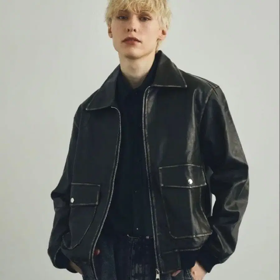 빈티지 스타일 합성 피혁 오버 사이즈 지퍼 재킷