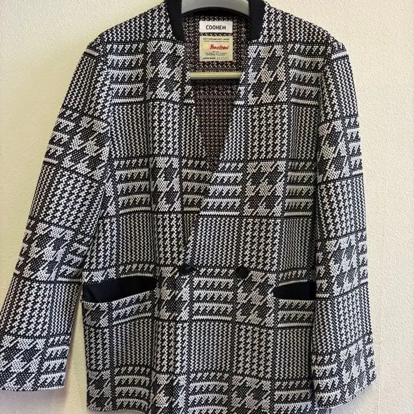 Yonetomi COOHEM 노카라 자켓 체크 무늬